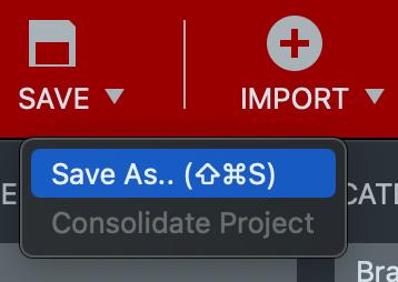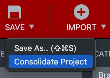 The “Consolidate Project” option from the “Save” drop-down conveniently gathers all audio files in use and copies them into a sub folder named “Media” placed next to the Project File. This option is disabled if all used audio-files already resides in the Media folder.