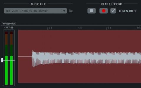 Pressing Record now arms the recording. As soon as the input level exceeds the Threshold level the recording starts. There is always 1.5 seconds of pre-roll audio saved prior to the trig. The recording can also be started manually by pressing the Record button again.